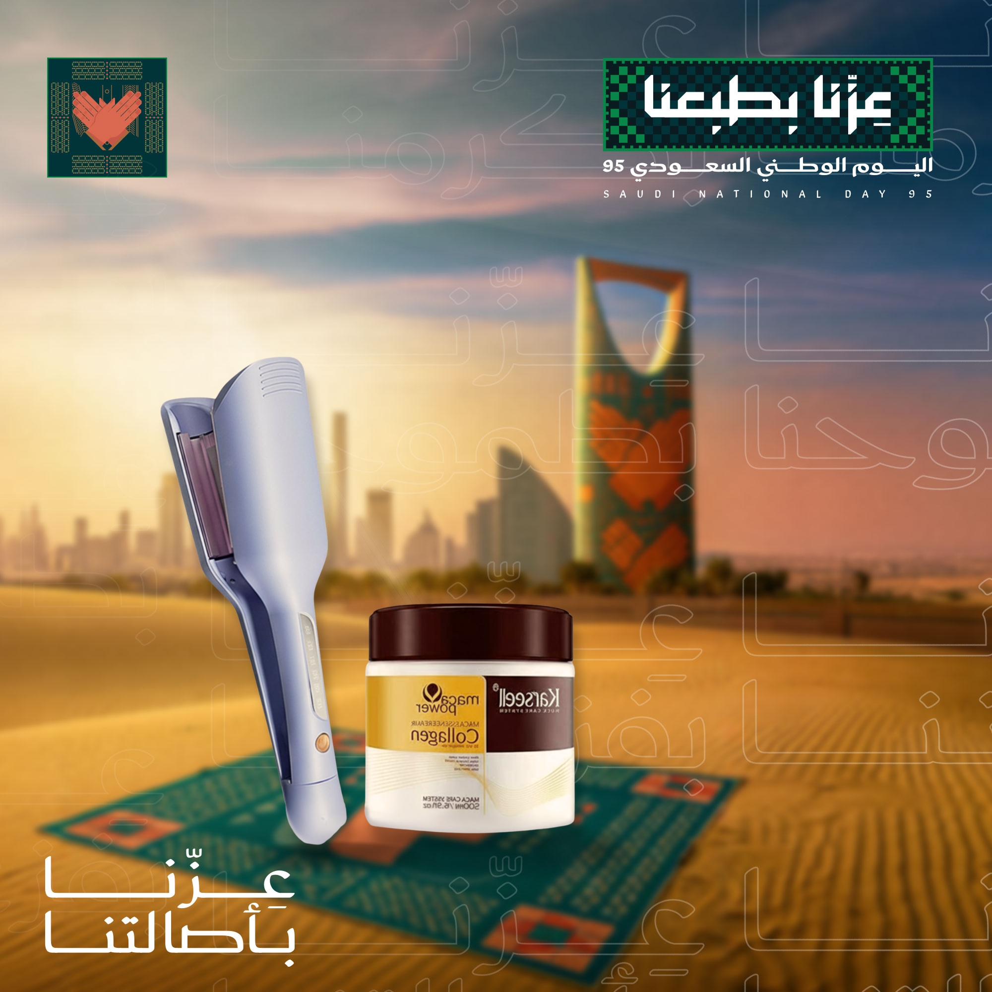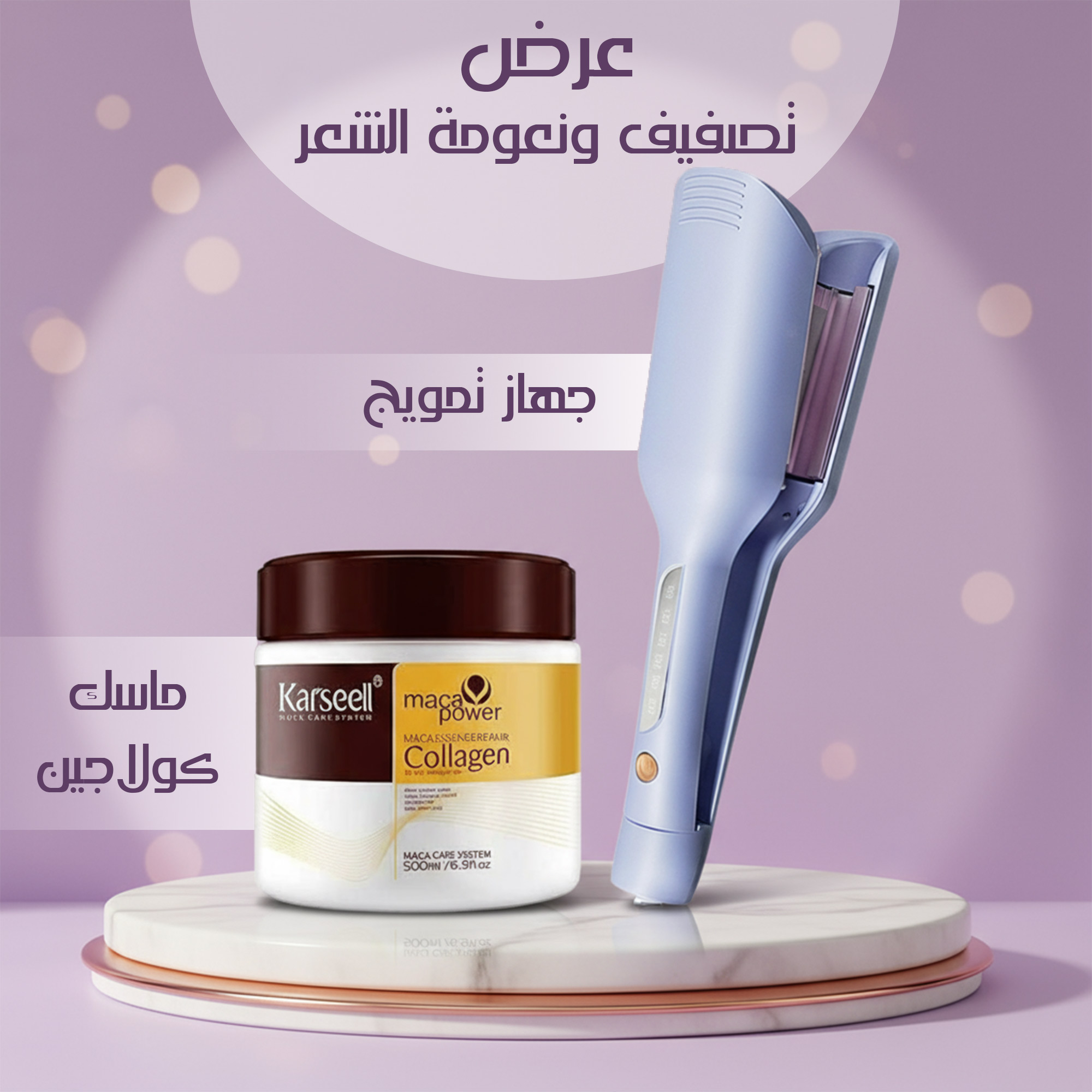 عرض تصفيف ونعومة الشعر جهاز تمويج + ماسك كولاجين